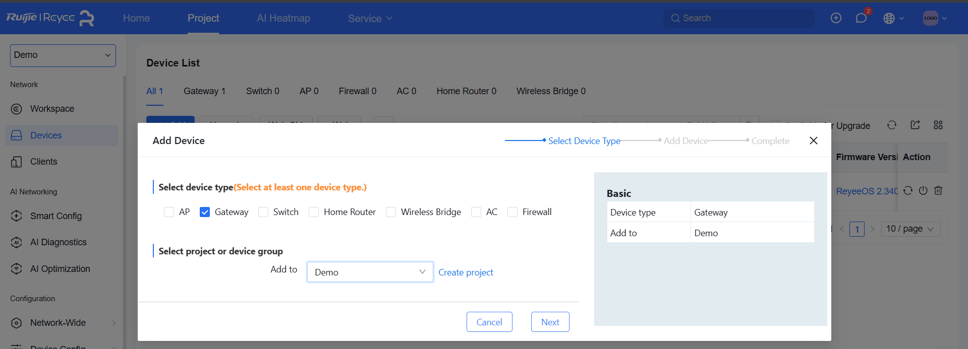 Bước 1: Thêm thiết bị lên Ruijie Cloud